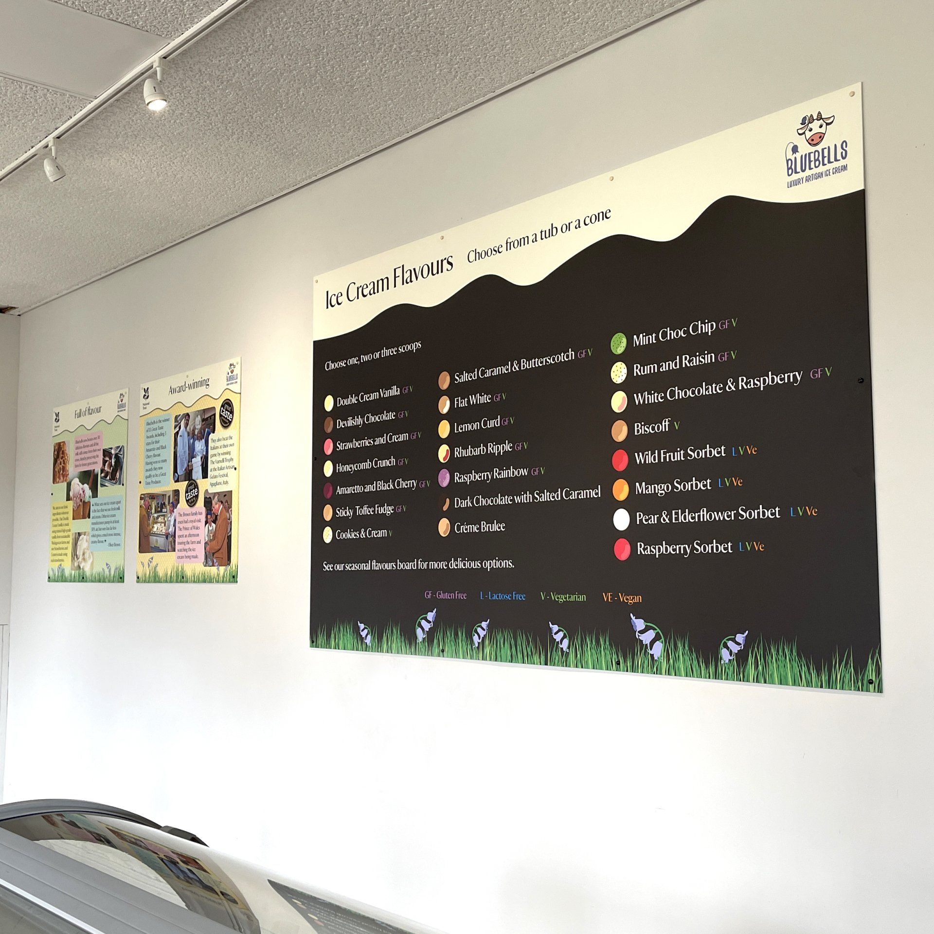 Professional graphic display panels - a variety of boards, laminates, fixings, sizes and qty's. Whether you want to fix using velcro or install using our premium chrome fixings we have a solution for you and your budget. Installation service available (subject to location, size and qty's). The guide below is our standard stocked range; we can offer many other solutions on request.