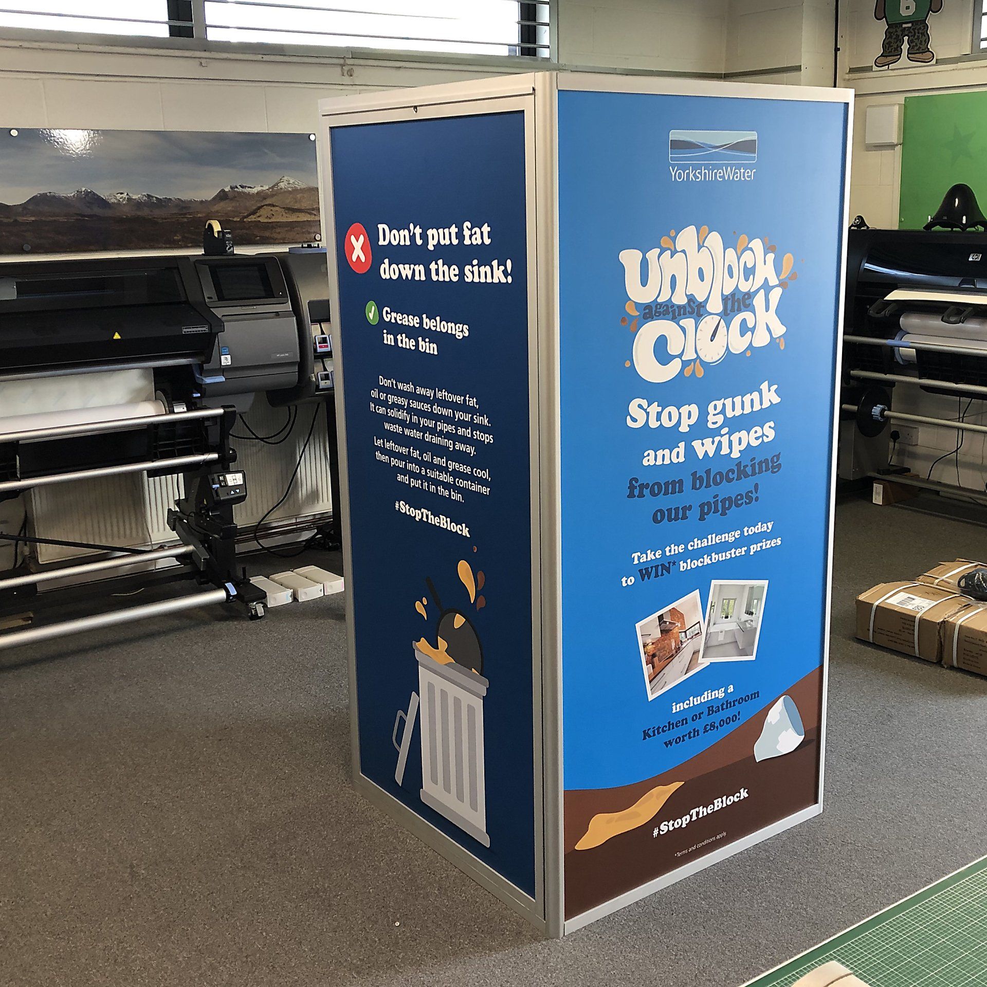 Our Freestanding Towers & Booths come in a variety of shapes and sizes. The hard wearing 5mm thick rigid graphics sit within the strong aluminium framework to provide a central focal point at any event or exhibition.