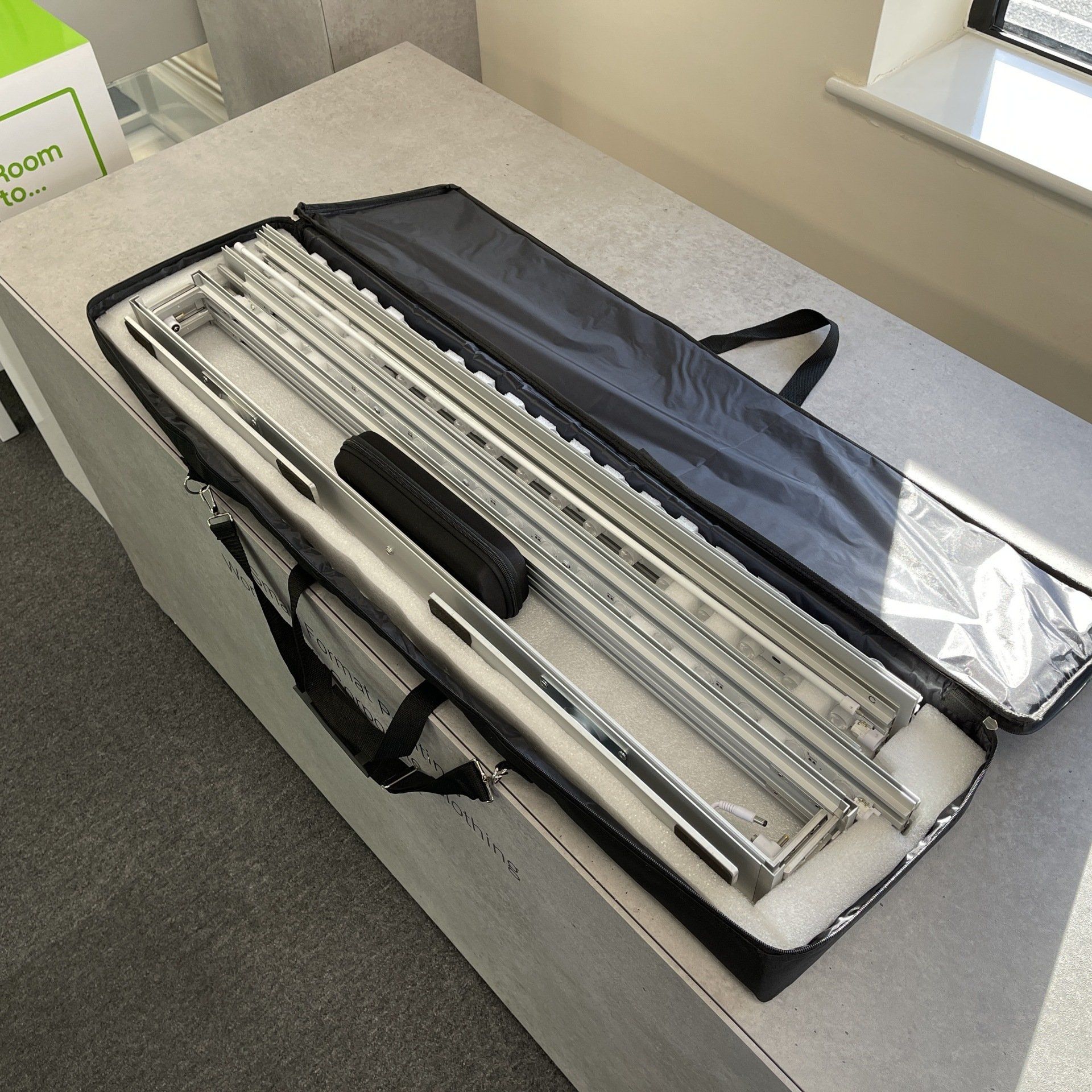 Our sleek portable LED Lightbox fits neatly in to a handy canvas bag (supplied). Surprisingly quick and easy to slot together. The LED lights give off a powerful 6000k bright white light to illuminate one side or both. The stretch Fabric graphic simply push fits in to the frame edges. If you want to use single sided purchase one graphic and one block out fabric. If you want to use double sided purchase 2 graphics. Available in two widths. See how easy it is... check out the video below!